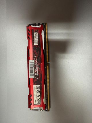 Vendo kit de memorias RAM DDR4 Crucial Ballistix, 4 módulos de 8 GB cada uno (total 32 GB). 🔹 Modelo: Crucial Ballistix BLS8G4D26BFSEK.BFD 🔹 Capacidad total: 32 GB (4×8 GB) 🔹 Frecuencia: 2666 MHz 🔹 Latencias: CL16-18-18-38 🔹 Voltaje: 1.20 V 🔹 Perfil XMP compatible 🔹 Disipadores rojos incluidos 🔹 Funcionan perfectamente, probadas y funcionando sin problemas. 🔹 Para PC de sobremesa (DDR4). ⚠ Importante: Solo compatibles con placas base DDR4 (no sirven en placas con DDR5). 💰 Precio: 90€ (No negociable) Envío disponible