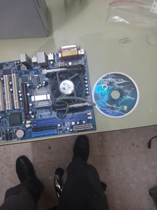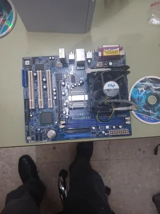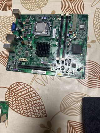 Placa base de ordenador. Al poner corriente se arranca como se ve en las fotos pero no sé su funcionamiento se vende tal como se ve con memoria RAM ventilador y procesador no se acepta devoluciones i-1 - Modelo Intel. - Incluye ventilador con disipador.