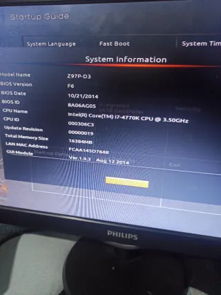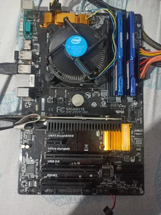 Pack funcional de placa base, procesador y memoria RAM. Procesador I7 4770k 16 de RAM hyperx 16000 hz Gráfica msi gt 710 2gb Placa base GA Z 97P-D3 - Placa base Gigabyte GA-Z97P-D3. - Procesador Intel. - Memoria RAM HyperX.