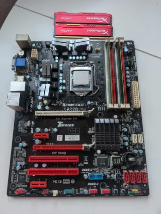 Pongo a la venta este combo de placa base, procesador y memoria RAM. Se encuentra en muy buen estado estético y funcionando correctamente. Especificaciones del Pack: -Placa Base: Biostar TZ77A (Socket LGA 1155). Soporta USB 3.0 y SATA 3. Una de las placas más sólidas para esta generación. -Procesador: Intel Core i5-3570K (Frecuencia base 3.40 GHz, Turbo hasta 3.80 GHz). Versión "K" con multiplicador desbloqueado. -Memoria RAM: 8GB DDR3 (2 módulos de 4GB testeados y funcionando al 100% Añado 2 módulos adicionales de regalo de 4GB DDR3 de regalo. No he podido confirmar si funcionan correctamente