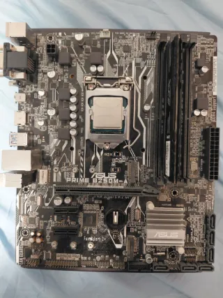 Placa base Asus PRIME B250M-A y I5 6500. - Soporte para memoria DDR4. - Ranura PCIe 3.0. - socket LGA 1151 ( sexta y septima generacion intel ). -la vendo por falta de uso pero todo esta correctamente. - por 10€ mas trae un modulo DDR4, 2666mhz de 8gb.