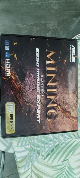 Placa base Asus B250 Mining Expert. - Soporta procesadores Intel LGA 1151. - Diseñada para minería con 19 ranuras para GPU. - Conectividad HDMI. - Lista para hardware de minería 19x GPU. - Funciona correctamente
