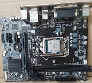 Placa base Gigabyte B150M-D3H DDR3. - Soporte para memoria DDR3. - Chipset B150. - Socket LGA 1151. La compré porque estaba montando un pc hace 5 años, no sé utilizó, al final compré un pc completo y guardé la placa porqué también soportaba el i7 de sexta y séptima generación.