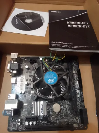 Placa base ASRock H310CM-HDV. Soporta procesadores Intel® Core™ de 9ª y 8ª Generación (Socket 1151) Soporta memoria DDR4 1 PCIe 3.0 x16, 1 PCIe 2.0 x1 Opciones de salida gráficos: DVI-D, D-Sub, HDMI Audio 7.1 canales HD (Realtek ALC887/897 Audio Codec) 4 SATA3 4 USB 3.1 Gen1 Socket de procesador: LGA 1151 (Zócalo H4) Procesador compatible: Intel® Celeron®, Intel® Core™ i3, Intel Core i5, Intel Core i7, Intel Core i9, Intel® Pentium® - Incluye manual de instalación rápida y CD de drivers. - Soporta procesadores Intel. - Conexiones de audio ELNA. -por 15€ mas cpu Intel i3 8100