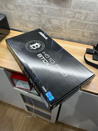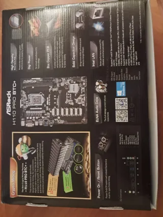 Vendo placa base ASRock H110 Pro BTC+. Está en buenas condiciones, aunque la caja presenta algunos signos de uso. - Modelo: H110 Pro BTC+ - Ideal para minería de criptomonedas - 13 GPU