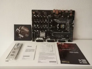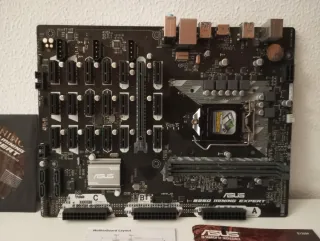 Placa base Asus B250 Mining Expert. - Diseñada para minería. - Incluye manual de usuario y CD de drivers.