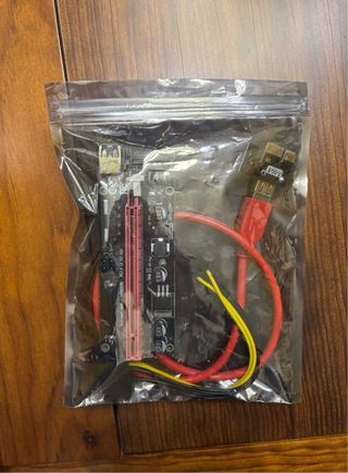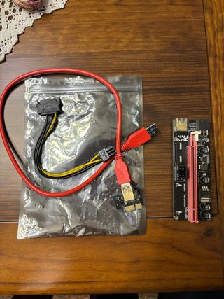Riser PCI-Express modelo PCE164P-N08 VER009S, adaptador de PCIe x1 a PCIe x16, utilizado principalmente para minería de criptomonedas, pruebas de tarjetas gráficas o montajes de GPU fuera de la placa base. Incluye: • Tarjeta adaptadora PCIe x16 • Adaptador PCIe x1 • Cable USB 3.0 • Cable de alimentación SATA 5 unidades disponibles.