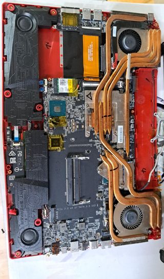 MSI ms-16p6 recambios. lleva placa base, disipadores, bateria, bisagras izquierda y derecha le falta la RAM y el disco duro preguntar precio. LEJA3