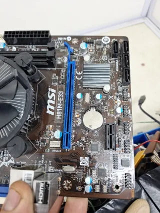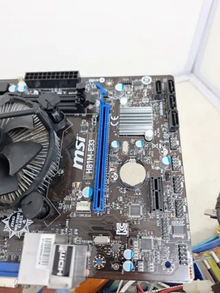 Placa base para ordenador de la marca MSI. Al poner corriente se arranca como se ve en las fotos se vende tal como se ve en las fotos con memoria RAM procesador y ventilador y-1 - Modelo H81M-E33. - Incluye disipador y ventilador Intel.