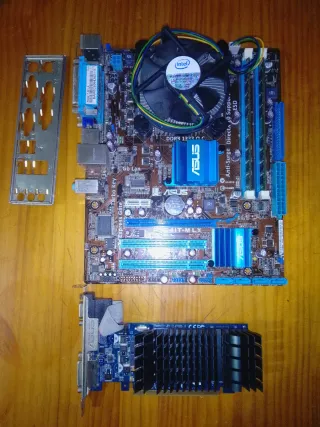 Se vende conjunto de placa base ASUS P5KPL-AM SE, procesador Intel Core2 Quad Q9400 y 4 GB de memoria RAM DDR2 (2x2GB). En perfecto estado de funcionamiento. Se regala el disipador de stock. - Placa base ASUS P5KPL-AM SE. - Procesador Intel Core2 Quad Q9400. - Memoria RAM incluida.