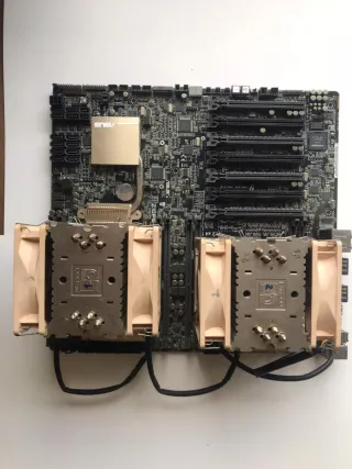Se vende lote de dos placas base para PC. - Placa base marrón con disipador y ventilador. - Placa base morada con disipador y ventilador. Una es socket 939 y la otra 462 Va otra placa de regalo para piezas ya que creo que no funciona