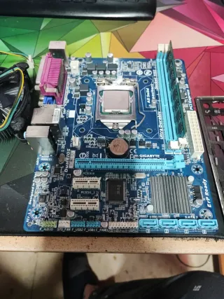 Placa base Gigabyte para socket 1155. - Soporte para procesadores Intel. - Ranuras de memoria RAM DDR3. - Múltiples puertos SATA. - Conectividad PCI Express. - incluye procesador - incluye ventilador - incluye memoria - funciona perfectamente - se entrega limpia y con pasta térmica recién puesta.