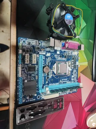 Placa base ASRock H61M-VG3 con procesador Intel Celeron G1620 y 8gb de ram ddr3. Pasta termica recien cambiada Perfecto para equipos de ofimatica o para actualizar esos equipos antiguos que ya empiezan a funcionar mal. Por 10€ mas incluyo la fuente de alimentacion que tengo en mi perfil. Corre windows 10 sin problema. El equipo ha sido utilizado para hacer pruebas de hardware y creacion servidores en casa. El ventilador del disipador tiene un aspa rota y vibra un poco pero no afecta al rendimiento. Cualquier duda preguntar sin compromiso. |Intel, Ordenadores, Pc, Placa madre, Procesador, Ram|