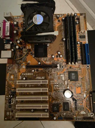 Placa base ASUS P4S800 socket 478 ddr agp pci atx se da con procesador, ventilador, memorias y pila de placa incluida se quito funcionando.lo unico qur no tengo es la plaquita que va a la caja . - Modelo P4S800. - Color marrón.