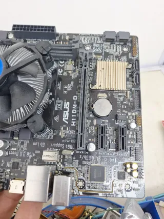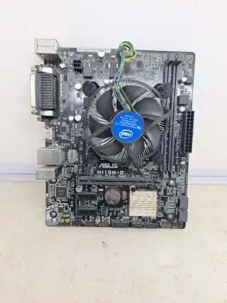 Placa base ASUS H110M-D. Placa funciona como se ve en las fotos se vende tal como se ve con procesador y ventilador no se acepta devoluciones B-1 - Soporte SATA 6Gb/s. - Soporte USB 3.0. - Incluye ventilador Intel.