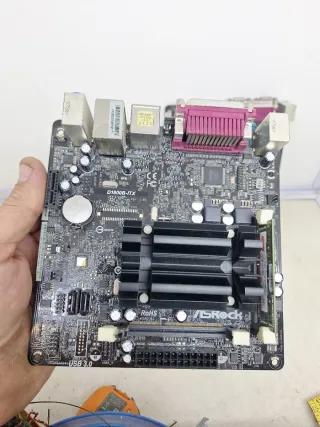 Placa base de ordenador en formato mini. Al poner corriente se arranca como se ve en las fotos se vende tal como se ve con memoria rama y procesador y ventilador no aceptan devoluciones x-1 - Diseño compacto. - Conectividad versátil.