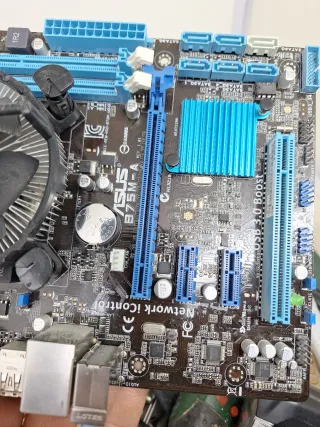 Placa base ASUS B75M-A. Al poner corriente se arranca como se ve en las fotos se vende con ventilador y procesador no se acepta devoluciones t-3 - Compatible con procesadores Intel. - Soporta memoria RAM DDR3. - Incluye puertos USB 3.0.