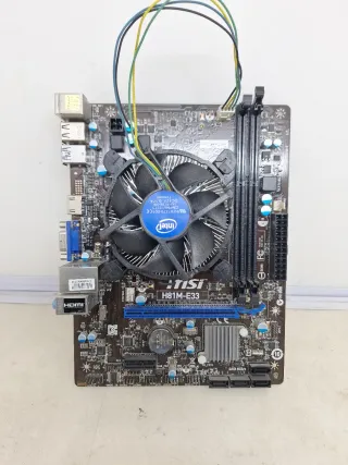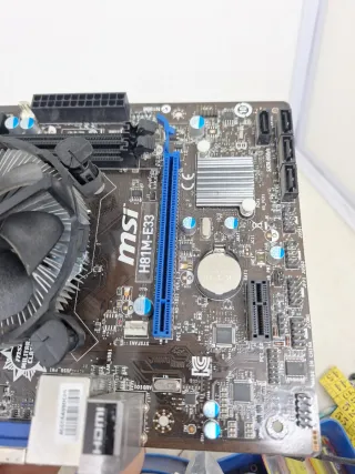 Placa base para ordenador de la marca MSI. Al poner corriente se arranca como se ve en las fotos se vende tal como se ve en las fotos con memoria RAM procesador y ventilador y-1 - Modelo H81M-E33. - Incluye disipador y ventilador Intel.