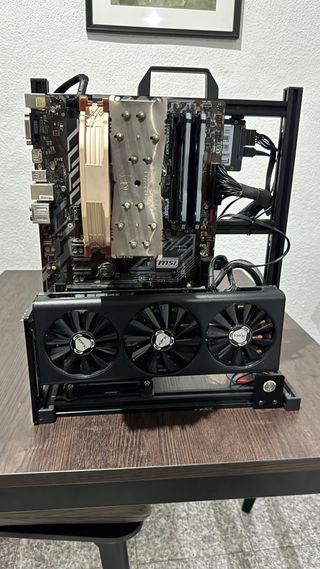 Ordenador gaming montado en estructura. perfecto para jugar a 2k -CPU: 17 9700k, 8 cores 8 hilos a 3.6GHz (turbo 4.9GHz). -RAM: G-Skill RGB 2x8gb DDR4 3000MHz (16 gb). -Gráfica: ATI AMD XFX RX 5700 XT 8gb GDDR5. -Placa base: MSI B360-A PRO. -M2: Kingston 512gb m.2, ultrarápido. -HDD: 400gb. -Disco duro: PNY de 1t -Disipador: Nontua 140mm NH-U41S. -Pasta térmica ARTIC MX4 en CPU y Grafica.