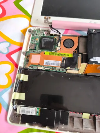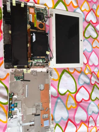 Lleva tiempo guardado porque nunca se pudo arreglar la placa base, lo demás funcionaba, pantalla,bateria, etcc Cobro 30€ porque es lo que me ha costado llevarlo a que me saquen el disco duro y lo formateen.Ya que no quería estropear nada.El disco duro también funciona. Conjunto de piezas para Asus Eeepc 1008HA. - Componentes internos de portátil. - Pantalla. - Carcasa inferior.