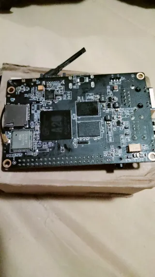 Placa base Banana Pro de Lemaker. - Conectores GPIO dorados. - Puertos Ethernet y HDMI. - Ranura para tarjeta SD. Antena wifi desconozco su función