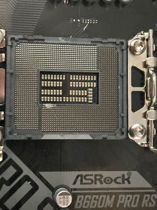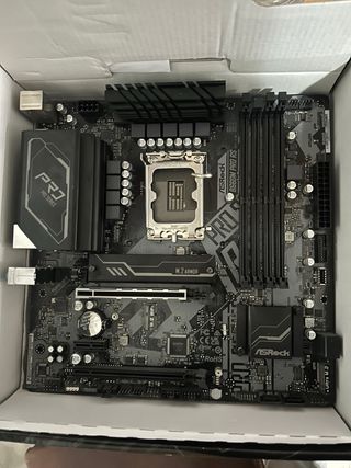Placa base ASRock B660M Pro RS. TIENE ALGO DE PASTA TERMICA VER FOTOS ,EN UNOS PINES ES POCO LIMPIANDOLA FUNCIONARIA BIEN -No hay pines doblados - Soporte para procesadores Intel. - Diseño M.2 Armor. La enviaria con la caja