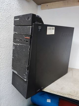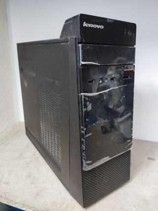 Ordenador de sobremesa Lenovo en color negro. - Diseño compacto - Panel frontal con puertos USB y audio. PC de sobremesa. INTEL°PENTIUM 3700 hasta 1.6 a 2,4ghz 4 GB RAM DDR 3 Ssd 120 Windows 10 Pro La Placa base incluye: 4*USB 3.0 Entrada Cargador VGA HDMI Lector cd/dvd Lector de tarjetas Entrada Ethernet Entrada Audio y Micrófono Jack 3.5mm +Cargador