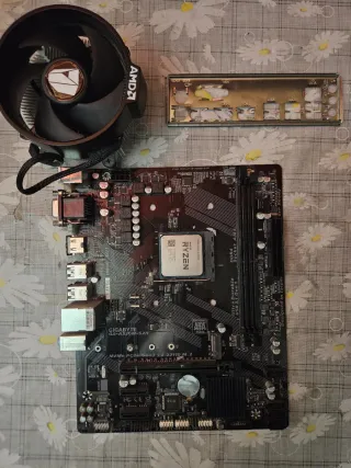 Placa base Gigabyte GA-A320M-S2H con procesador AMD Ryzen 5 3400 G + dicipador. Funciona perfecto, con comprobación. No negociable!