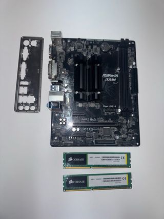 Placa base en perfecto estado, marca Asrock con procesador intel incluido y graficos integrados, con dos modulos de 4GB de Corsair , en total 8GB.