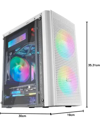 Caja para ordenador de sobremesa con diseño moderno y panel lateral transparente. Compatible con placas base MicroATX y Mini-ITX. DISEÑO GAMING: Ventana lateral de cristal templado, 3x ventiladores frontales FRGB, rejilla frontal TOTAL-MESH, controles y conexiones en la parte superior MÁXIMA CAPACIDAD DE REFRIGERACIÓN: Triple sistema de ventilación delantero/trasero, rejilla frontal TOTAL-MESH y soporte para refrigeraciones líquidas de 120mm MÁXIMA CAPACIDAD INTERNA: placas MicroATX y Mini-ITX, hasta 4 discos SSD de 2.5" y 2 discos HDD de 3.5" ILUMINACIÓN RGB GAMING AVANZADA: Sistema de iluminación Fixed RGB