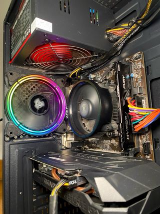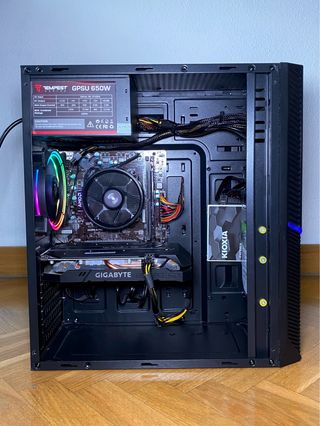 Vendo PC gaming completo ideal para jugar, estudiar o trabajar. Incluye cristal templado lateral (quitado para hacer las fotos del interior). Especificaciones: • CPU: AMD Ryzen 5 3600 (6 núcleos / 12 hilos) • GPU: NVIDIA GeForce GTX 1650 Super 4GB • RAM: 8 GB DDR4 HyperX Fury • Almacenamiento: SSD SATA rápido • Placa base: MSI A320M-A PRO • Fuente: Tempest 650W • Caja: Tempest con ventiladores incluidos • Refrigeración: Disipador AMD stock Extra: teclado de regalo con luz led. 💻 PC silencioso y estable, listo para enchufar y usar. 📍 Entrega en mano preferible