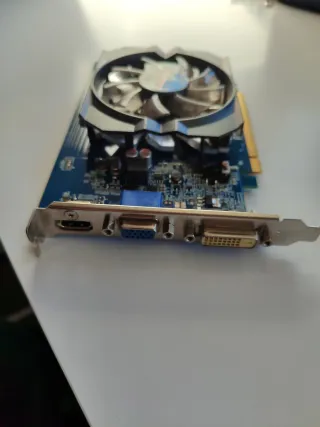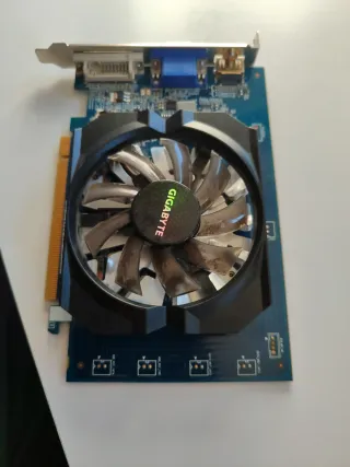 Tarjeta gráfica compacta NVIDIA GT 730 de 2GB. -Conexión estándar PCI Express x16, compatible con prácticamente cualquier placa base del mercado. No necesita alimentación adicional (se alimenta directamente de la placa), por lo que es ideal para fuentes de alimentación sencillas. - Es la solución perfecta para PCs que necesitan una salida de vídeo fiable o para mejorar un equipo de oficina. -Memoria: 2GB DDR3. -Puertos: HDMI y DVI (ideal para dos monitores). -Ventaja: Bajo consumo y muy silenciosa. Estado estético y de funcionamiento 10/10.