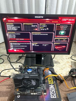 Conjunto de placa base Gigabyte B250M DS3H y procesador Intel Core i5-7500. - Placa base Gigabyte B250M DS3H. - Procesador Intel Core i5-7500. - Velocidad del procesador: 3.40GHz. - PCIe M.2 NVMe para poner SSD - Disipador de serie con cobre - Backplate (Chapita trasera) Componentes está casi sin uso, como nuevo, placa lleva su caja