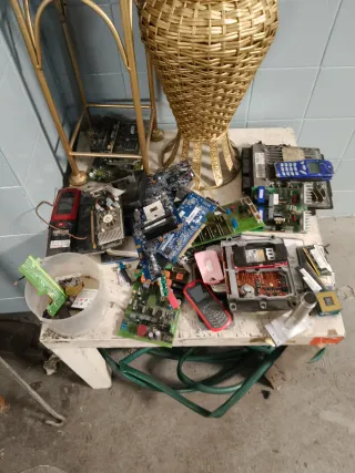 Lote de componentes electrónicos para reciclaje o proyectos. - Placas base y tarjetas. - Teléfonos móviles antiguos. - Componentes de ordenador.