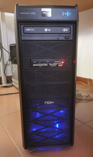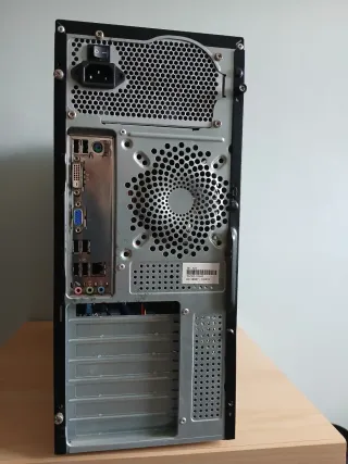 - Torre ordenador NOX con los siguientes componentes - Placa base MSI H61M-P31(G3). - Procesador CPU intel core i3 2120 3.30GHz. Fuente alimentación 500w. - Tarjeta gráfica NVIDIA GeForce GT610 con puertos HDMI, VGA para conectar al HDMI de la televisión TV o monitor. - Disco duro Kingston 240 GB SSD. - RAM 4 GB DDR3 - Lector CD/DVD RW ASUS. 2 USB frontales. 1 USB lateral. 6USB traseros. Tomas auriculares y micrófono frontales y traseras. Puerto LAN de conexión internet Windows 10 pro - Puedo añadir teclado y ratón óptico por 15€ más.