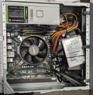 PC AMD compacto con procesador Ryzen 4700S y tarjeta gráfica RX550. Incluye Windows 11 preinstalado - Caja CiT MTX008B - Carcasa para PC ITX, Fuente de alimentación GameMax TFX de 300 W incluida, Ventilador Frontal de 80 mm Incluido - Disco duro Hitachi 500Gb 7200rpm secundario y Crucial SSD 480Gb con el S.O. - Kit placa base y procesador de 8 nucleos Ryzen 4700S con 16Gb RAM integrados formato ITX - Tarjeta Gráfica RX550 2Gb - No se puede instalar lector de discos frontal - Fotográficas con las conexiones traseras y frontales - Dimensiones: Ancho: 95mm Profundidad: 295mm Altura 290mm - Entrega en mano en Palencia y Valladolid