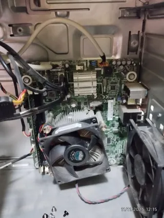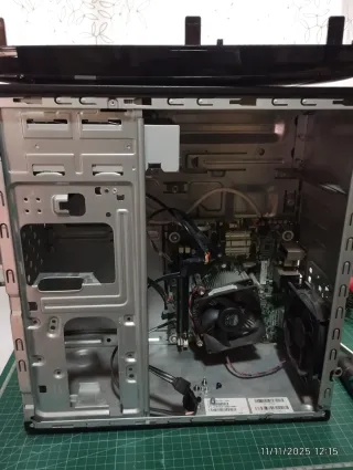 Caja de ordenador con placa base incluida y en funcionamiento. Lector de disco - Placa base instalada. - Ventilador de CPU. - Ventilador frontal.
