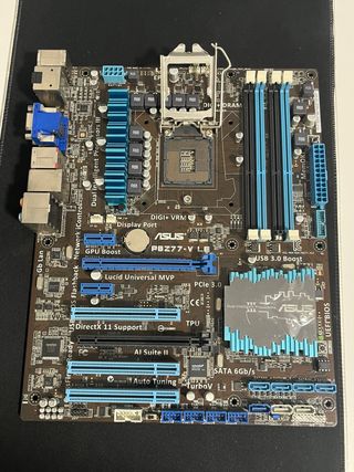 Placa base ASUS modelo PBZ77-V LE + Procesador intel i5 2550K de 3.406GHz. - Soporte para procesadores Intel. - Múltiples ranuras de memoria RAM. - Conectividad USB 3.0 y SATA 6Gb/s. - Puertos DisplayPort y VGA. - Soporte para DirectX 11. Venta en mano Respondo preguntas
