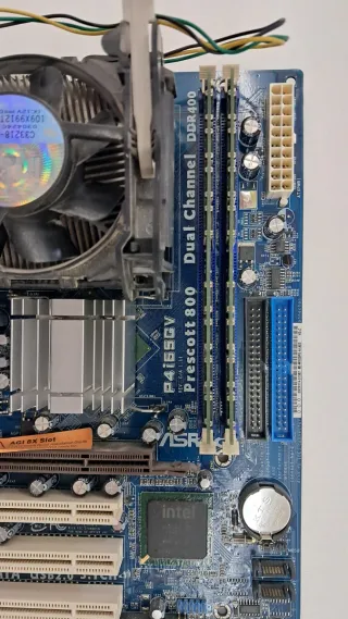 Placa base Asus P4i65GV Prescott 80. - Socket 478. - Soporta memoria DDR. - Ranuras PCI y AGP. - Conectores SATA y USB 2.0.