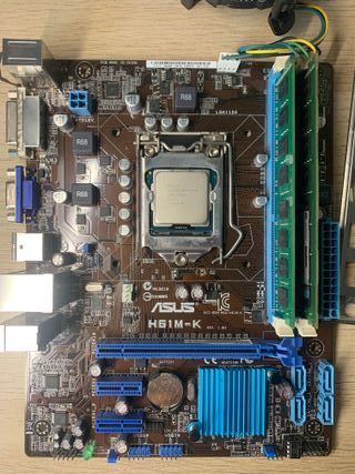 Placa base Asus H61M-K. - Modelo: H61M-K - Marca: ASUS - Soporta procesadores Intel. - Incluye disipador y ventilador.