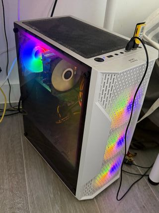 PC Gamer blanco y excelente rendimiento en juegos pesados en gráficos altos. Fortnite +220FPS - ✅ Tarjeta Gráfica Zotac Gaming RTX 3060 12GB ✅ Procesador Ryzen 5 3600 ✅ Placa base B450 Machinist AM4 ✅ 16GB Ram 3600MHz ✅ 500GB M.2 ✅ Fuente alimentación Nfortec Scutum 650W 80+ Bronce SemiModular ✅ RGB personalizable ✅ Windows 11 Pro instalado con licencia Conserva los plásticos de los cristales. - Cualquier duda, puedes preguntarme y te contestaré de inmediato. Puedo hacer envíos, pero prefiero quedar en persona por la zona de Valencia.