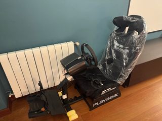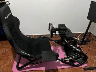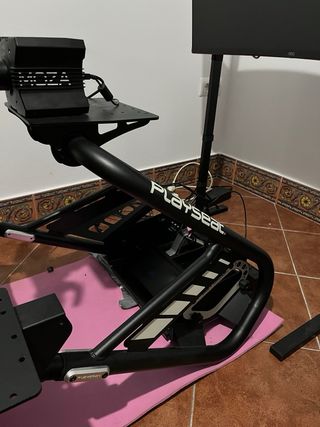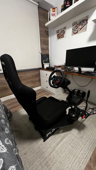 Cockpit de simulación de carreras Playseat Challenge X con el logo de Logitech G. - Diseño plegable para fácil almacenamiento. - Estructura robusta y estable. - Soporte para pedales integrado. Lo vendo por cambio a otro cockpit. OJO: Tiene unas pequeñas marcas en el ajuste de la base. Si no se aprieta bien es posible que ceda. No recomendado para bases de más de 3 n/m. Solo entrega en mano, por la zona de Ponteareas, ya que ni tengo la caja original, ni lo voy a desmontar.