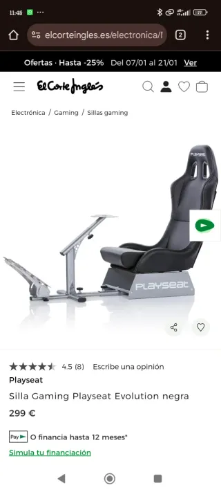 Silla de gaming Playseat con soporte para volante y pedales. Diseñada para una experiencia de simulación inmersiva. - Estructura robusta y estable. - Asiento ergonómico. - Soporte ajustable para volante. - Base para pedales integrada. opción comprar con volante preguntar