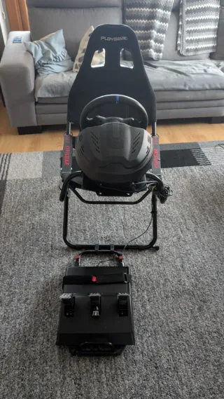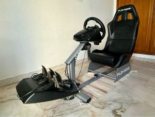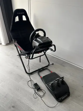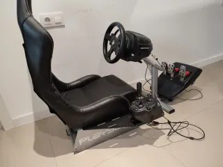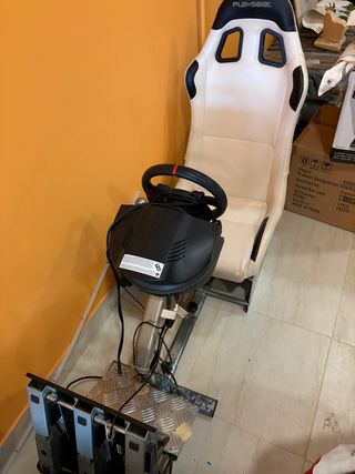 Pack de simulación de conducción con silla Playseat Challenge y volante Thrustmaster T300. - Silla de carreras plegable. - Volante con pedales. Tanto el playseat como el volante están muy bien, el único defecto son las gomas debajo de los pedales.