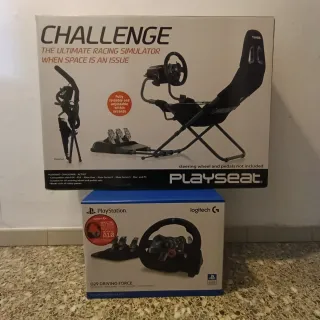 Pack de simulación de conducción con asiento y volante. - Asiento de la marca Playseat. - Volante Logitech G29 con pedales incluidos. - Ambos artículos se encuentran en estado nuevo. Si se compran las dos cosas serían 600€. Si compras solo el playseat 450€. Si compras solo el g29 250€.