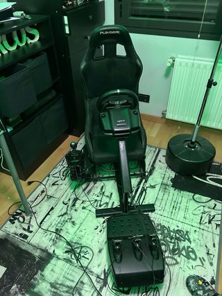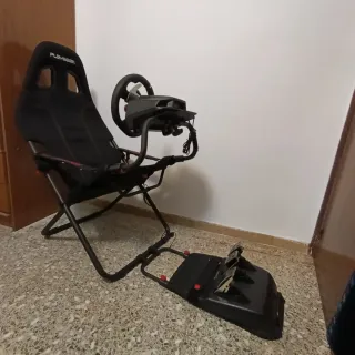 Simulador de conducción completo para una experiencia inmersiva. - Asiento de carreras con estructura robusta. - Soporte ajustable para volante. - Base para pedales. - Diseño plegable para fácil almacenamiento. Volante thrusmaster T248 con pedales la caja del volante no la tengo. Está todo impecable