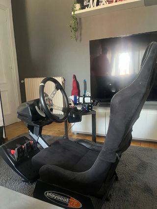 Vendo asiento simulador Playseat Evolution Alcántara en perfecto estado, ideal para disfrutar al máximo de juegos de conducción. Incluye volante y pedales Thrustmaster T150, compatible con PS3, PS4 y PC. Todo funciona perfectamente.
