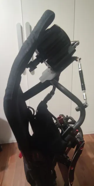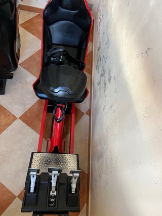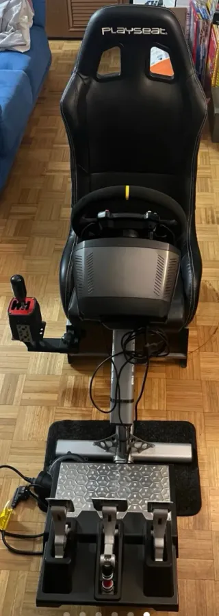 Vendo Playseat Trophy comprado hace unos 3 meses. Está 100% funcional, sólido y rígido, pero tiene bastantes arañazos y marcas estéticas por el uso y por el montaje de accesorios. Algunos adhesivos originales están desgastados o se han raspado en ciertas zonas. Todo es solo estético y no afecta al rendimiento. La placa de pedales tiene agujeros de haber montado distintos pedales. Incluyo además una placa de pedales adicional que reduce la flexión y mejora la sensación al frenar. Extras incluidos: soporte para shifter, 2 soportes para bass shakers BST-1, portavasos y soportes para mandos Meta Quest 3.
