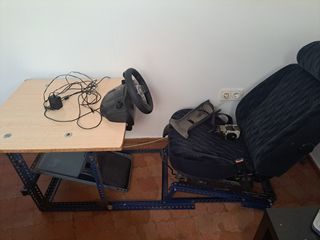 Precio No Negociable play seat simulador coches carreras con mesa grande para poner torre pc teclado y la pantalla poder pegarla junto al volante para ofrecer mas realidad inmersión de cabina. chasis muy robusto, ofrece diferentes ajustes: -inclinación del asiento( tipo f1, turismo normal...) -inclinacion altura de pedales - ajuste largo de piernas -ajuste altura mesa-volante. El asiento no es de tela tensada como muchos PlaySeat, éste es un asiento de coche de verdad,marca Ford con cinturón de seguridad real, robusto cómodo y duradero. regalo el volante logitech con sus pedales play station gran turismo Nintendo ca