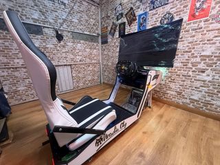 Simulador de F1 completo, listo para la acción. - Asiento de carreras. - Volante. - Pedales. - Palanca de cambios.